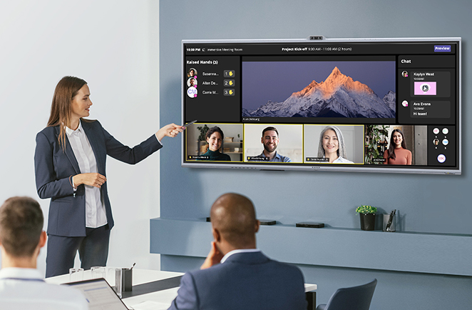 Las pantallas interactivas de MAXHUB pueden satisfacer las necesidades de reuniones locales y colaboraciones remotas a través de la integración de funciones de proyector, pizarra electrónica, señalización publicitaria, ordenador, micrófono, audio, etc.